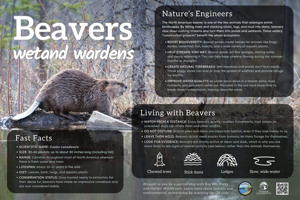 This interpretive sign and QR landing page are part of a formal partnership between Harbor WildWatch and Key Pen Parks focused on community enrichment and environmental learning. Under the agreement, Harbor WildWatch produces interpretive signage and delivers educational programs within the district at no cost to Key Peninsula residents. Key Pen Parks supports this work through contracted funding, and Harbor WildWatch provides participation reporting after the conclusion of services.